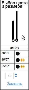 Вы должны выбрать цвет стрелки для нужного размера