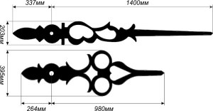 | Габаритные чертежи стрелок часов до 1,5 м (механизм XB-12) | ||